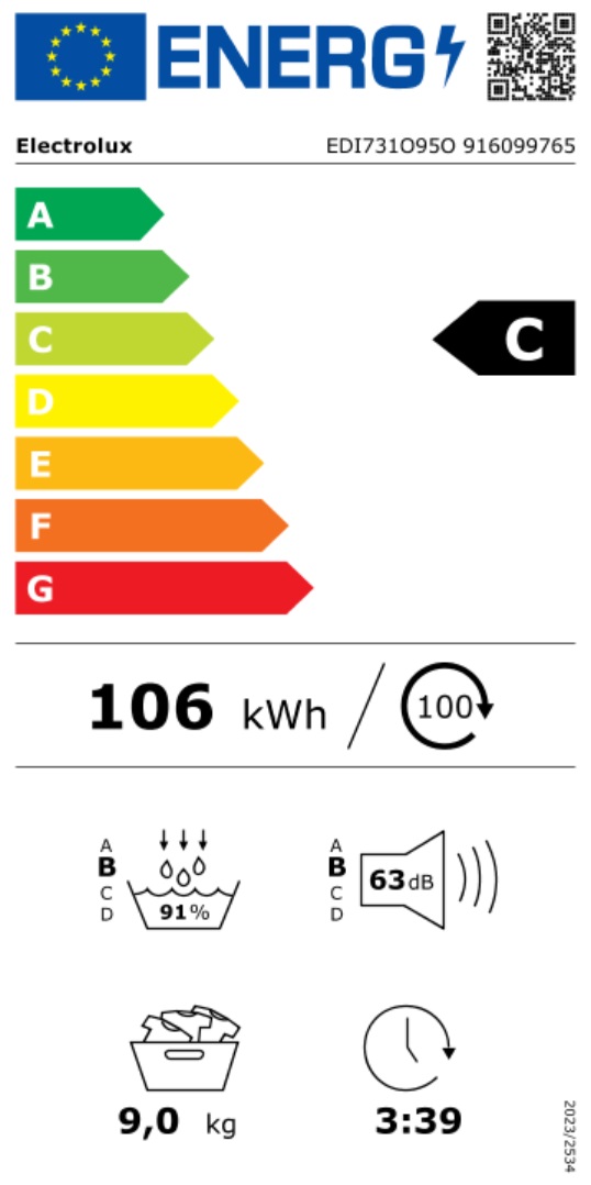 Electrolux EDI731O95O lämpöpumppukuivausrumpu