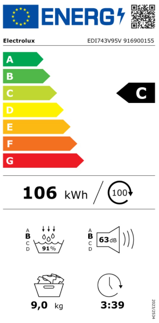 Electrolux EDI743V95V lämpöpumppukuivausrumpu