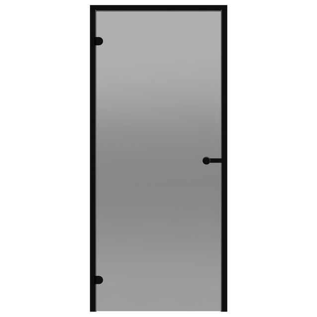 Harvia Black Line 8x19 lasiovi alumiinikarmilla. Alumiinikarmiovi on tyylikäs ratkaisu tiloihin, joissa materiaaleilta vaaditaan hyvää kosteuden kestoa. Mustaan alumiinikarmiin voi valita toiveensa mukaisen kestävän lasin neljästä värivaihtoehdosta: pronssi, savunharmaa, kirkas sekä mattapintainen satiini. Näyttävä ovikokonaisuus sisältää karmin lisäksi mustat saranat sekä vetimen. Black Line -sarjan tuotteet kruunaavat modernin sauna- ja kylpytilakokonaisuuden.