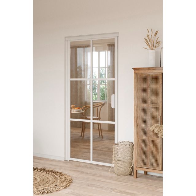 Hietakarin Bläk 798 Paris -lasiovi on teollisuushenkiseen tyyliin muotoiltu moderni sisäovi särmikkäillä ruuduilla ja valkoisilla profiileilla. Laadukkaan oven mekaanisilla osilla ja turvalasin karkaisulla on 10 vuoden takuu. Oven kehykset ja koristelistat ovat polttomaalattua alumiinia ja lasi 6 mm vahvuista karkaistua turvalasia.Ovi aukeaa ulospäin 90 astetta, ja se varustetaan säädettävällä keskityksellä. Keskitys pyrkii palauttamaan oven takaisin auki ja kiinni -asentoihin. Kattoon asennettava peitelista estää oven aukeamisen molempiin suuntiin. Seinä asennetaan valmiisiin pintoihin mukana tulevilla kiinnityslistoilla.Mittatilaustuote: Tuote valmistetaan mittojen mukaan, joten sillä ei ole vaihto- eikä palautusoikeutta.