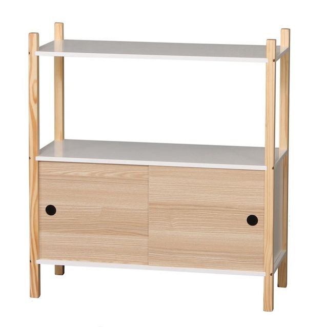 Kompakti ja erittäin käytännöllinen hylly lastenhuoneeseen sisältää myös alakaapin. Hyllyosassa voidaan säilyttää pienten lempikirjoja ja alakaappi soveltuu mukavasti esimerkiksi lelujen säilytykseen. Hylly luonnollinen puupinta ja neutraali valkoinen väritys soveltuvat monenlaiseen säilytykseen.
