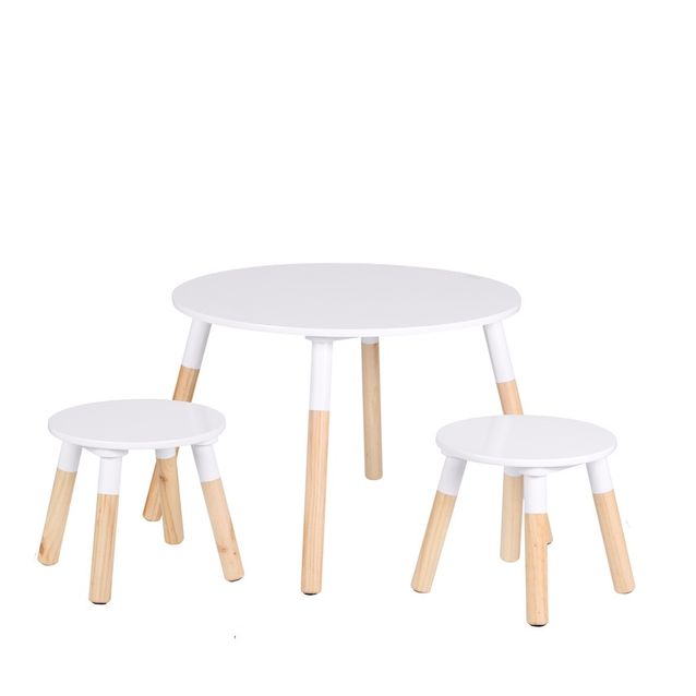 Siro Judy Wild Kid's Spirit lasten istuinryhmä sisältää pöydän ja kaksi tuolia. Esimerkiksi luku- ja pelihetkin soveltuvan pöydän halkaisija on 55 cm. Tuolien istumakorkeus on 27,5 cm. Kalusteryhmän mäntyjalat ovat luonnollista puupintaa ja istuinosat sekä pöytälevy ovat valkoista kalustelevyä. Tämä esteettinen lasten pöytäryhmä sopii monenlaisiin sisustuksiin.