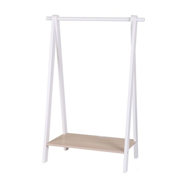Kompakti lasten vaaterekki mahtuu pieneen tilaan ja sisältää myös kenkätason. Tämän kauniin vaatetelineen luonnollinen puupinta ja neutraalinvalkoinen väritys sopii monenlaiseen sisustukseen.