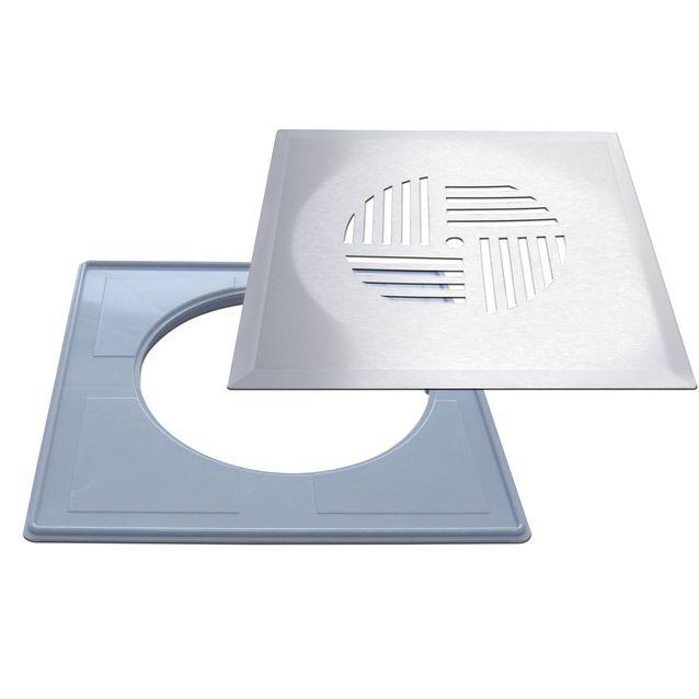 Pakkaus sisältää muovisen (ABS) epäkeskon asennuskehyksen, joka on helppo asentaa lattiakaivon päälle laatoituksen yhteydessä. Epäkeskolla asennuskehyksellä ratkaistaan tyypilliset epätasaisen laattajaon tuomat ongelmat. Epäkeskolla kehyksellä on monta eri asennusmahdollisuutta. Se säästää aikaavievältä laattojen leikkaamiselta ja tuo siten kustannussäästöjä. Kannen keskeltä syvennetty muotoilu.