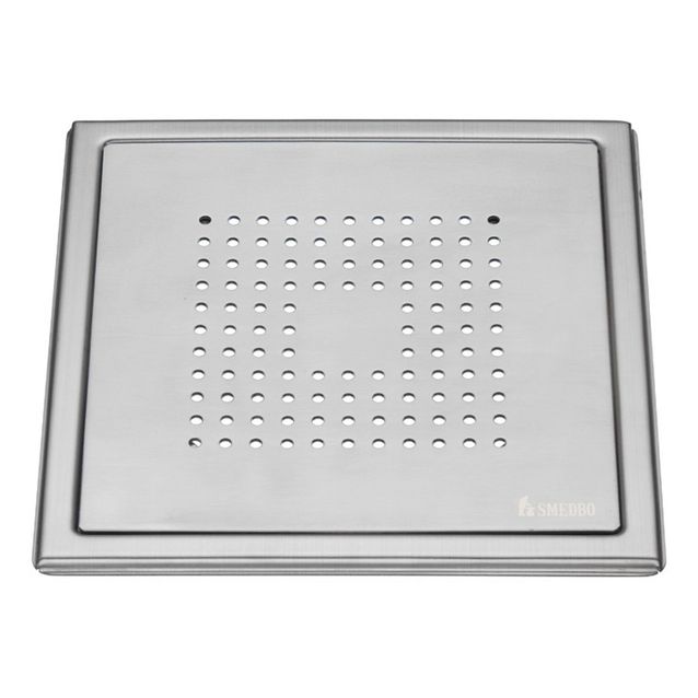 Kätevä Lattiakaivon kansi Smedbo Outline Neliö 200x200 mattaharjattua ruostumatonta terästä.