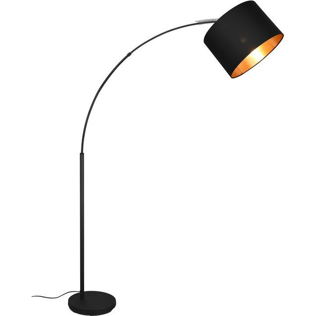 Trion ajaton Bolivia -lattiavalaisin ottaa tilansa, mutta pelkistetty design pitää kokonaisuuden sirona. Mattamustan valaisimen varsi on kaareva. Kangasvarjostimen sisäpuoli on kullanvärinen. Liitosjohdossa on/off-jalkapainike. Valaisimen korkeus 171 cm., leveys 35 cm ja syvyys 120 cm. Valonlähde 1xE27, polttimo ei sisälly mukaan.