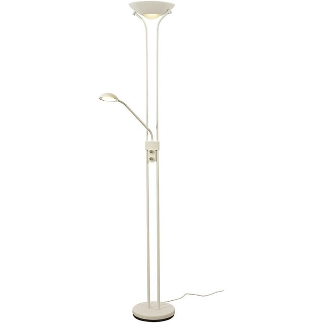 Tässä valkoisessa Aneta Lighting Nice-lattiavalaisimessa on kaksi käytännöllistä toimintoa: ylöspäin suuntautuva yleisvalo sekä suunnattava lukuvalo. Tämä valaisin sopii hyvin vaikka olohuoneeseen lepotuolin vierelle. Molemmille valoille on omat himmentimet valaisimen rungossa.