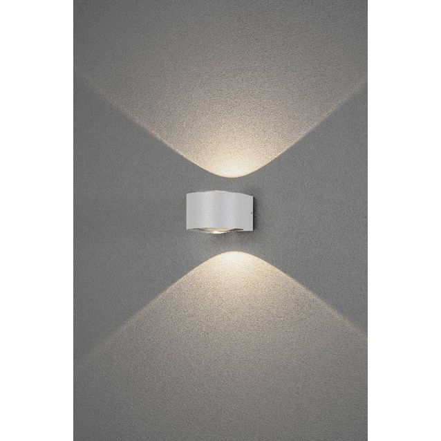 Tämä valkoinen Gela-seinävalaisin antaa kauniin valonkajon sekä ylös- että alaspäin. Runko on maalattua alumiinia, lasinen linssi. Ketjutettavissa.