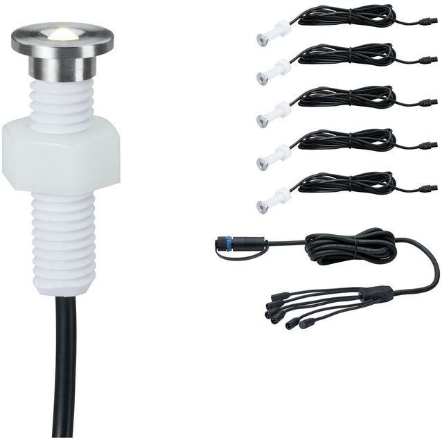 Paulmann Plug & Shine MicroPenPro on pieni ja pyöreä LED-terassivalaisin, joka valaisee puhdasta, valkoista valoa. Valaisin soveltuu erinomaisesti terassille tai kävelypoluille. Mukana tulee laajennussetti, jonka avulla voit yhdistää jopa viisi valaisinta olemassa olevaan 24 V valaisin yhdistelmään. Terassivalaisin on kotelointiluokaltaan IP68.