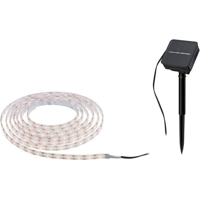 Lämpimän valkoista valoa tuottava, aurinkoenergialla toimiva LED-nauha, jonka pituus on 3 metriä. Nauhaa voidaan leikata lyhyemmäksi merkitystä kohdasta. LED-nauha luo kodikkaan tunnelman parvekkeellesi tai puutarhaasi. Se luo valsitusta ilman näkyviä LED-pisteitä ja on erittäin ympäristöystävällinen ja energiatehokas innovatiivisen aurinkoenergiatekniikan ansiosta. Aurinkomoduuli voidaan helposti sijoittaa ja asettaa maahan maapiikin avulla. Akku latautuu auringonvalossa päivällä. Integroidun hämäräanturin ansiosta valo syttyy automaattisesti pimeän tultua. Pinnoite suojaa pölyltä ja roiskevedeltä.