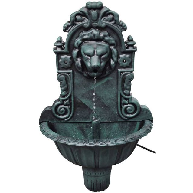 Tämä vintagetyylinen seinään kiinnitettävä suihkulähde on koristeltu leijonanpäällä. Suihkulähde voidaan asentaa seinään helposti ja nopeasti. Tämä suihkulähde on varustettu tasaisesti juoksevalla vesipumpulla, ja vettä kierrätetään jatkuvasti.