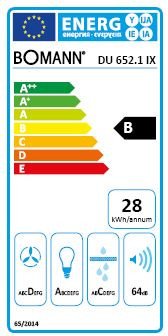 Bomann DU6521-liesituuletin pitää keittiön ilman raikkaana ja puhtaana. Seinälle asennettavan teräksenvärisen liesituulettimen imuteho on 214-339 m3/h ja äänitaso 57-64 dB. Tyylikkäästä liesituulettimesta löytyy 3 imutehoa ja energiaystävällinen LED-valaistus.