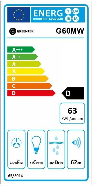 Greentek G50MW on perinteinen liesituuletinmalli. Seinälle asennettavassa liesituulettimessa on LED-valot ja helposti puhdistettavat alumiinisuodattimet.