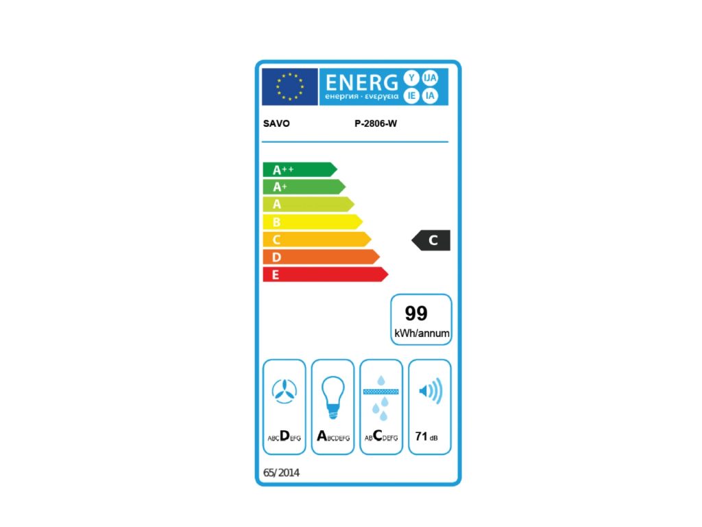 Savon P-2806-W on kalusteeseen integroitava liesituuletin, jonka leveys on 60 cm. Klassisessa tuulettimessa on ulosvedettävä lippa, kauniisti valaisevat LED-valot sekä metalliset, pestävät rasvasuodattimet. Mekaaniset käyttökytkimet sijaitsevat lipan päällä.