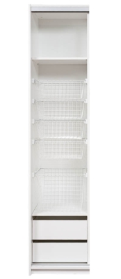 2-ovinen ja 180 cm levyinen Ida-liukuovikaappi, jossa on kaksi peiliovea ja vakiovarusteina kaapin sisällä leveä LED-valaistu vaatetanko ja kolme ylähyllyä. Säilytystilan muunteleminen omien tarpeidesi mukaan on helppoa, sillä voit valita kaapin vasemmassa ja oikeassa reunassa sijaitseviin kapeampiin osiin juuri sinulle sopivat lisävarusteet viiden vaihtoehdon joukosta. Myös keskellä sijaitsevaan leveämpään osaan voit halutessasi tilata neljän irtohyllyn setin.