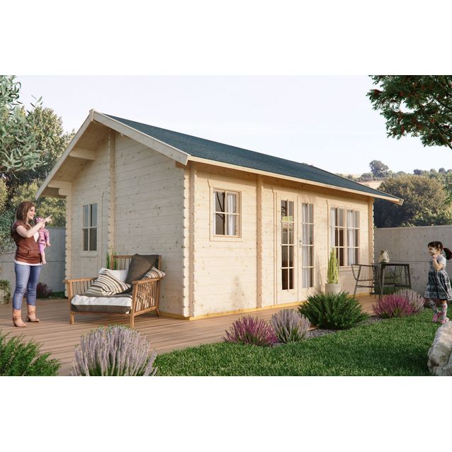 - Toimitussisältö: Täydellinen puuosatoimitus, ovet, ikkunat ja kattohuopa Icopal R330 ruskeanharmaa (vedenpitävä alushuopa). Kuviollinen ja värillinen pintahuopa ostettava tarvittaessa erikseen.