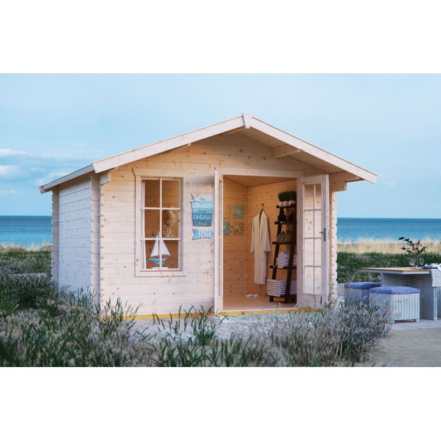 - Toimitussisältö: Täydellinen puuosatoimitus, ovi, ikkuna ja kattohuopa Icopal R330 ruskeanharmaa (vedenpitävä alushuopa). Kuviollinen ja värillinen pintahuopa ostettava tarvittaessa erikseen.