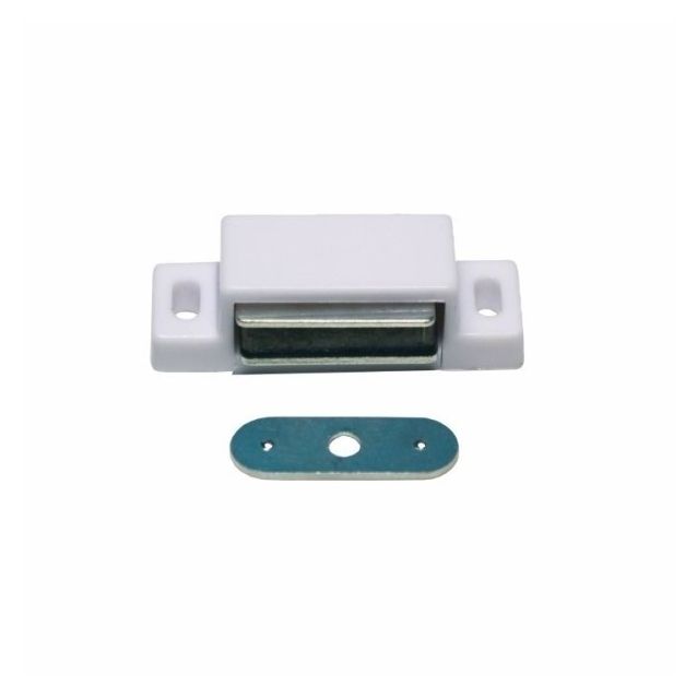 Valkoinen magneettisalpa on kätevä kiinnipitolaite esimerkiksi keittiön oveen. Materiaaliltaan muovia. Kantavuus 4 kg.