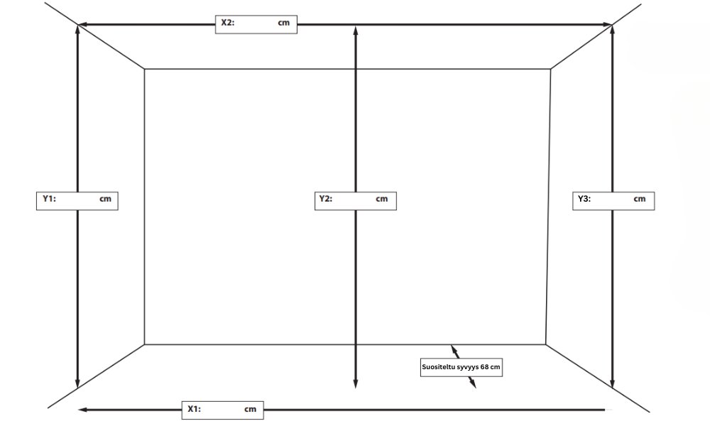 - Mittaa leveys (X1 ja X2): Mittaa seinien välinen etäisyys kahdesta kohdasta varmistaaksesi tarkan vaakasuoran istuvuuden.