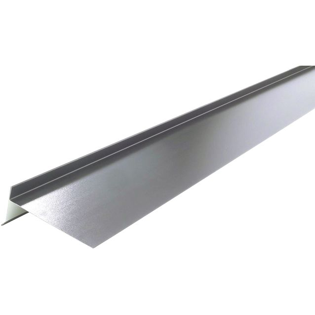 Harmaa, olallinen Kerabit-päätyräystäspelti on valmistettu sinkitetystä ja polyuretaanipinnoitetusta teräksestä. Peltien pituus on kaksi metriä.