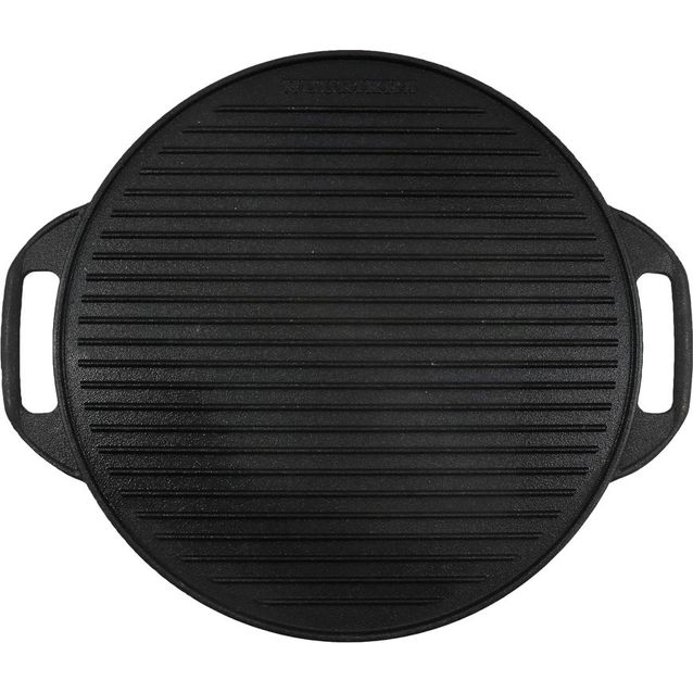 Valurautainen, käännettävä grilli-/parilapannu, jossa parilapuoli ja sileä puoli jota voidaan käyttää myös paistamiseen. Mukana suojapussi. Halkaisija 42 cm.