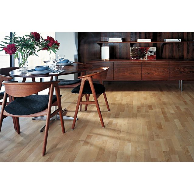 Kährs World Collection -malliston 3-sauvaisessa Kovavaahtera Toronto -parketissa on lämpimiä kultaisia sävyjä ja eloisaa kovavaahteran luonnollista värisävyn vaihtelua. Kovavaahteraparketin osalta on huomioitava, että sitä ei voi asentaa yhdessä lattialämmityksen kanssa.