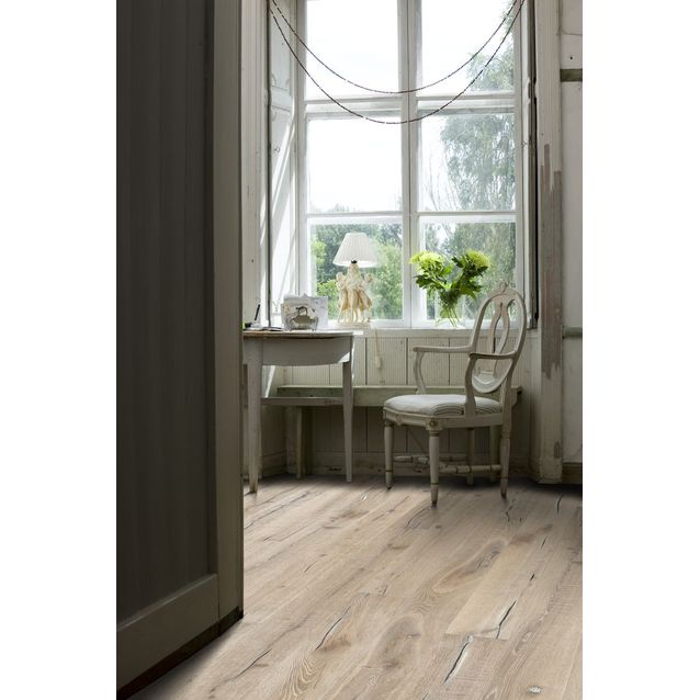 Tammi Aspeland on Kährs Småland -malliston vintagehenkinen, 1-sauvainen tammiparketti, jossa on ihastuttava vaalea sävy ja rustiikkista tunnelmaa. Parketissa on käsinkosketeltavan uniikki pinta, johon osittain tai kokokaan täytetyt koristehalkeamat, oksaisuus sekä sahausjäljet tuovat ajan patinoimaa ilmettä. Puun struktuuria tuo esiin myös voimakkaalla harjauksella korostettu puunsyykuvio. Laudan kaikilla sivuilla olevat reunaviisteet antavat lankkulattian ilmettä. Öljykäsittely luo heijastamattoman ja puun luonnonkauneuden säilyttävän pinnan. Tammi Aspeland sopii asennettavaksi lattialämmityksen kanssa. Kährs Woodloc 5S -lukkopontti on helppo ja nopea asentaa.