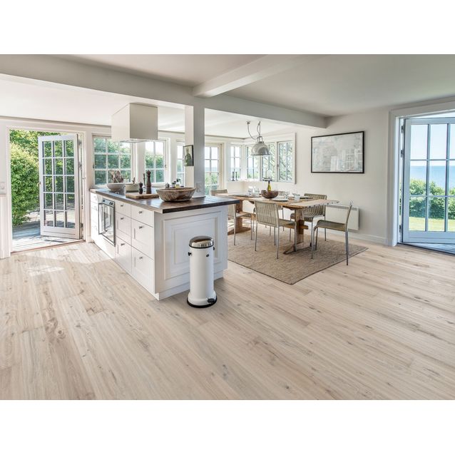 Kährsin Tammi Vista on Småland-malliston 1-sauvainen lumoavan kaunis tammiparketti. Kuulaan vaalean sävyn alta huokuu puun luonnollinen ilme oksineen. Pinnan struktuuria on korostettu harjauksella, joka tuo puunsyykuvion kauniisti esiin. Laudan kaikilla sivuilla olevat reunaviisteet antavat perinteisen lankkulattian ilmeen. Pintaan on käsin veistäen tehty kohokuviointia, mikä antaa ajan patinoimaa ilmettä. Vanhanajan puulattian ilmettä tuovat myös osittain täytetyt koristehalkeamat ja suurehkotkin oksat. Öljykäsittely luo heijastamattoman ja puun luonnonkauneuden säilyttävän pinnan. Tammi Vista sopii asennettavaksi lattialämmityksen kanssa. Kährs Woodloc 5S -lukkopontti on helppo ja nopea asentaa. Laudan mitat ovat 15x187x2420 mm.