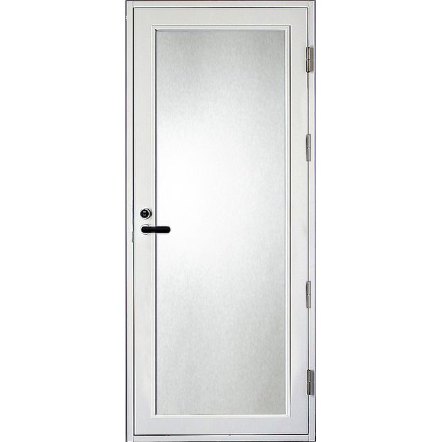 Ohjeet oikeanlaisen oven valintaan: Oven leveys ja korkeus karmeineen valitaan suunnitelmien mukaan. Oven koko karmeineen täytyy olla 20-30 mm pienempi sekä aukon korkeus- että leveyssuunnassa. Kätisyys katsotaan oven avautumispuolelta ja määräytyy sen mukaan, kummalla puolella saranat ovat. Oikeakätisen oven saranat ovat oven avautumispuolelta katsottuna oikealla ja ovi avataan oikealla kädellä. Vasenkätisen oven saranat taas näkyvät vasemmalla puolella ja ovi avataan vasemmalla kädellä. Oveen sisältyy vakiolukkorunko Abloy LC102. Voit valita mieleisesi helapaketin oveen tarviketoimituksena, jolloin helapaketti on asennettava oveen itse. Oven valmistaja on Kaskipuu.