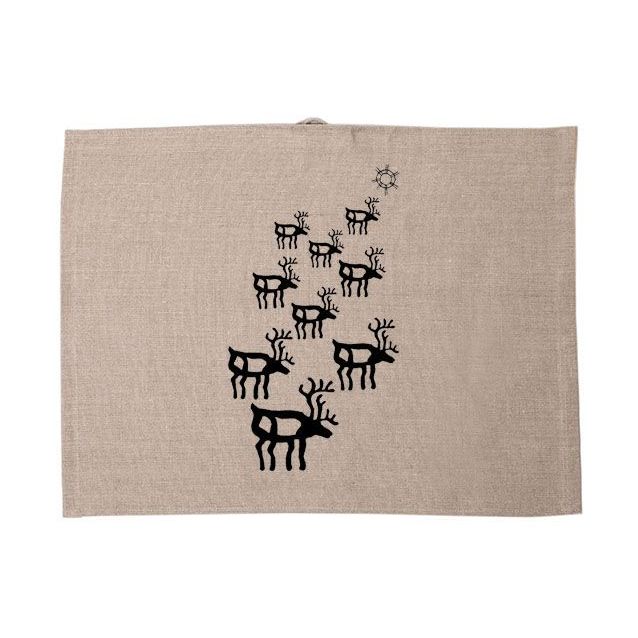 Pellavasta valmistettu ja käsinpainettu Pikkupuodin pefletti, jota koristaa Porot-kuosi. Liinan koko on 45x145 cm, ja se on pehmeä ja miellyttävän tuntuinen käytössä. Luonnonmukaisuutensa ansiosta pellava materiaalina kuivuu nopeasti. Tuotteen valmistuksessa on huomioitu ekologisuus ja kestävät arvot, ja käytetyt painovärit ovat myrkyttömiä. Pefletti kestää konepesun sekä vuosien kovan käytön.