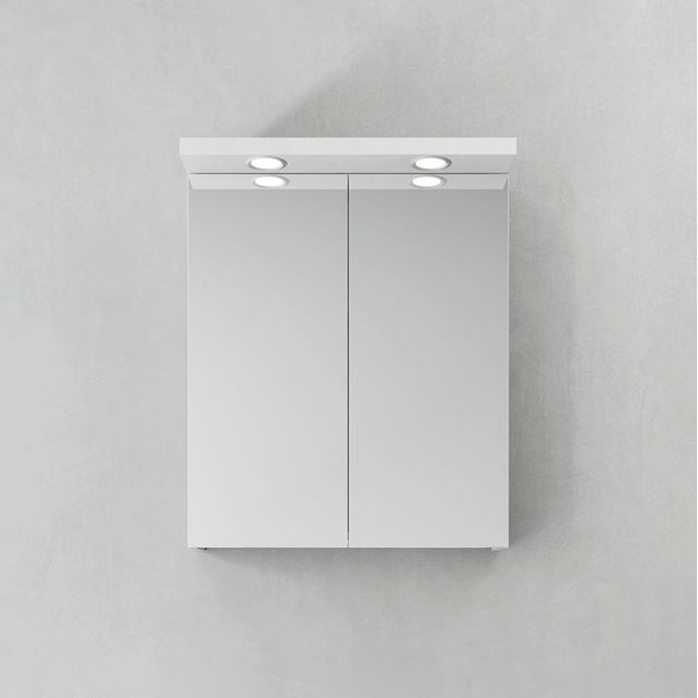 Hafa Store 600 on kaunis kylpyhuoneen peilikaappi, jossa on lämpimän valkoista valoa hehkuvat LED-kohdevalaisimet. Kaapissa on pehmeästi sulkeutuvat molemminpuoliset peiliovet, pistorasia oikealla puolella sekä irrotettavat lasihyllyt hyllynkannattimilla, jotka lukitsevat ne varmasti paikoilleen. Kaluste on helppo asentaa yksin kokonaisella kiinnityskiskolla ja säädettävillä ripustusheloilla. Peilikaappi on valmisteltu helppoa sähköasennusta varten, ja siinä on suojausluokka IP44.