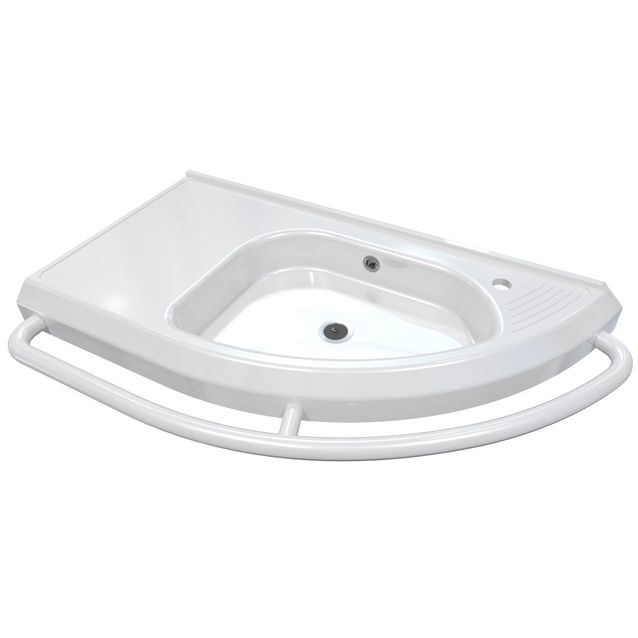 Laadukas Polarian 1030 mm leveä ORDEN 1000 -allas, jossa on liikkumista helpottava tukikaide. Kannakkeet, poistoputki ja vesilukko sisältyvät pesualtaan toimitukseen.