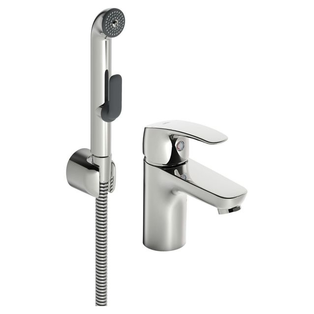 Käsisuihkulla varustettu Oras Safira 1012F -pesuallashana, jonka mukana ripustin ja suihkuletku 1,75 m. Laadukkaassa hanassa on poresuutin ja kiinteä juoksuputki. Sisältää myös bidetta-käsisuihkun.