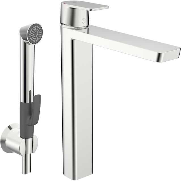 Korkea pesuallashana Oras Stela on tyylikäs malja-allashana, jossa on kiinteä juoksuputki, Bidetta-käsisuihku ja joustavat kytkentäputket. Hanassa on integroitu poresuutin, jonka kulmaa voidaan säätää veden roiskumisen estämiseksi. Korkeutensa ansiosta hana sopii hyvin malja-altaille.