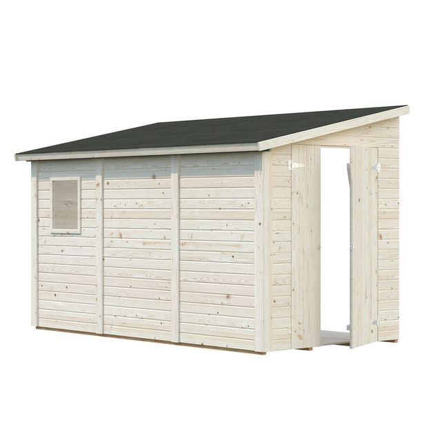 Kompakti Palmako Mia on laadukas pihavaja, joka asennetaan isomman rakennuksen viereen. Mia pihavaja on valmistettu 16 mm paksuista valmiista seinäelementeistä. Toimitukseen sisältyy myös 16 mm paksu lattia. Mia toimitetaan puuvalmiina, joten se voidaan käsitellä juuri omaan pihapiiriin sopivaksi. Toimitukseen ei sisälly katon katemateriaalia.
