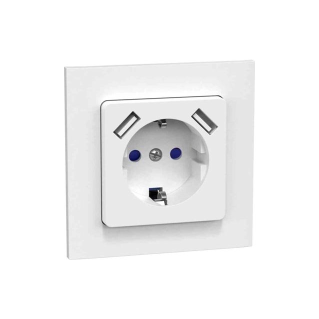 Uppoasennettavassa pistorasiassa on kosketussuoja sekä 2 kpl USB-porttia, jotka tarjoavat yhteensä 2,1 A erilaisten laitteiden lataukseen. USB-porttien kasvattaman syvyyden johdosta ei sovi Connect 2 Home -pinta-asennuskehykseen. Mukana myös kiinnityskynnet. Kiinnityskynsiä käytetään asennettaessa vanhempiin asennuksiin. Kynsisarja toimitetaan ruuveilla. Maadoitettu.