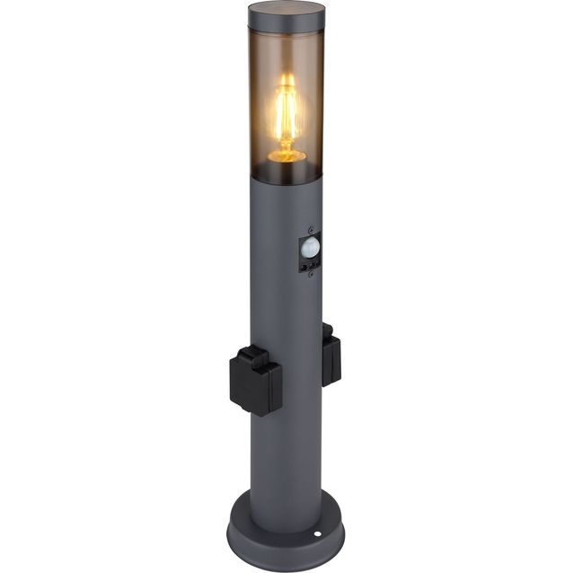 Globon liiketunnistimella ja kahdella pistorasialla varustettu Boston-pollarivalaisin on korkeudeltaan 60 cm. Valaisimessa on antrasiitinharmaa runko ja tyylikäs savulasi. IP-luokka 44, lamppukanta E27.
