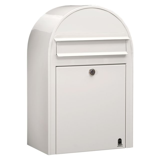 Suosittu postilaatikko Bobi valkoinen. Kestävän teräsrakenteen ansiosta Bobi postilaatikko vastaa nykyajan vaatimuksiin myös postin turvallisuuden suhteen. Huom! Kirjoitathan tilauksen yhteydessä haluamasi nimikyltin tekstin tekstikenttään. Nimikyltin tekstikirjasin Helvetica, max 21 merkkiä.