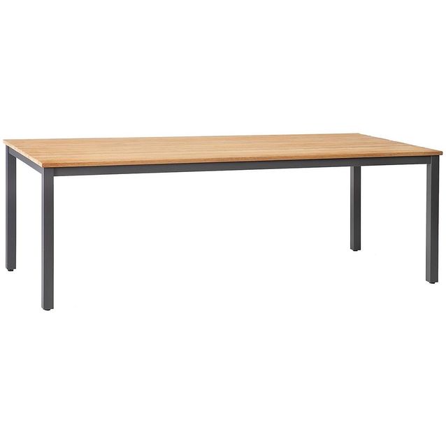 Pöytä Home4you Montana massiivipuisella pöytälevyllä ja jauhemaalatuilla, teräksisillä jaloilla. Harjattu viimeistely.