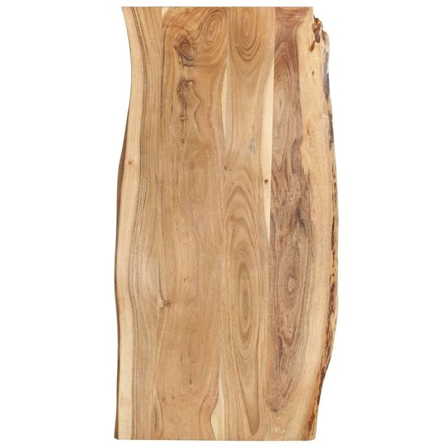 Tämä keittiön pöytälevy on valmistettu täydestä akaasiapuusta, joka on tiheä, tukeva ja kestävä trooppinen kovapuu. Täysi akaasiapuu on kiillotettu, maalattu ja lakattu sen tiivistämiseksi ja suojaamiseksi kosteudelta. Keittiön pöytälevy on muotoiltu puunrungosta ja siinä on eläväinen puureuna, joka säilyttää puun kauneuden.