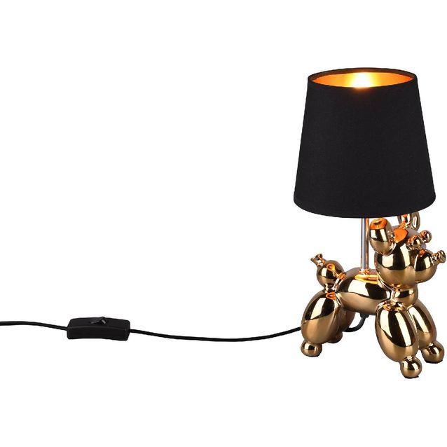 Bello pöytävalaisin on samaan aikaan leikkisä ja tyylikäs. Kullanvärinen koiranmallinen jalka kiinnittä huomion. Kokonaisuuden viimeistelee mattamusta varjostin, jonka sisäpuoli on kullanvärinen. Valonlähde 1xE14, polttimo ei sisälly mukaan. Liitosjohdossa on /off käsipainike. Korkeus 33 cm, leveys 17 cm ja syvyys 16 cm. Takuu 2 vuotta.