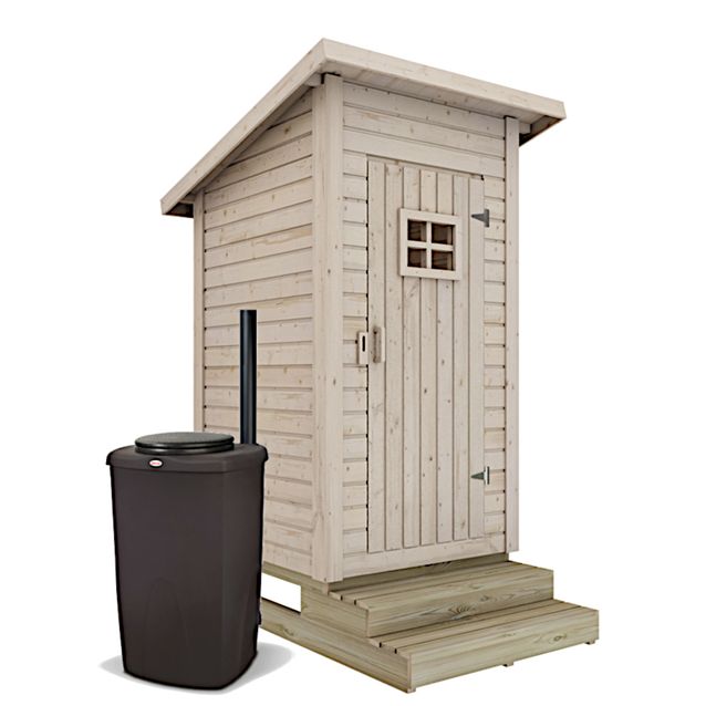- Toimitussisältö: Biolan Eco kompostikäymälä ja puuvalmis/käsittelemätön Miljöökoristeen käymälärakennus korokepalalla (sis. 2 porrasta)