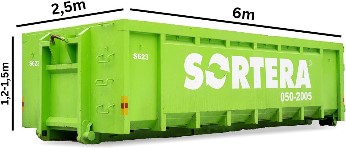 - Toimitussisältö: Sisältää lavan toimituksen, poishaun, 3tn jätettä ja 5 vrk vuokran