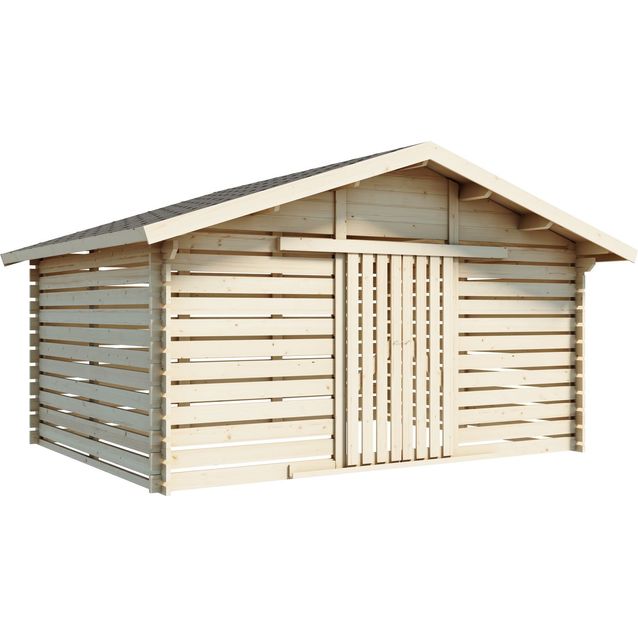 - Toimitussisältö: Tuotepakettiin kuuluvat hirsien, liukuparioven sekä kattolautojen lisäksi helat, naulat ja ruuvit. Katemateriaali ei sisälly toimitukseen. Katemateriaaliksi käy esim. palahuopa tai Katepal TopTite 3 -rullahuopa. Tiilikatetta ei suositella. Katemateriaali on asennettava heti rakennuksen pystytyksen jälkeen.Huom! Toimitus ei sisällä lattiaa.