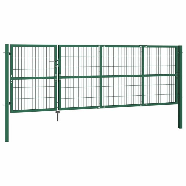 Puutarha-aidan portti tolpilla, 350x120cm, teräs, vihreä
