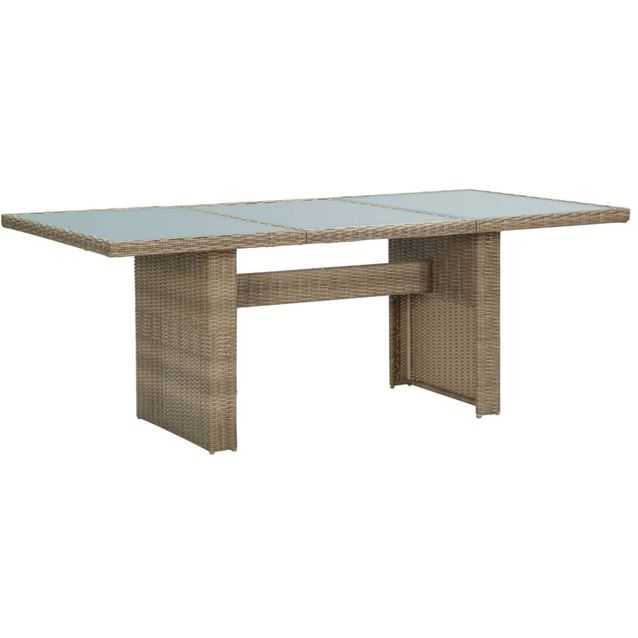 Puutarhapöytä on valmistettu PE-rottinkista, joten se on kestävä sääolosuhteita myöten. Teräsrunko ja lasinen pöytälevy tekevät pöydästä vankan ja vakaan. Kevyen rakenteensa ansiosta pöytää on myös helppo liikutella.