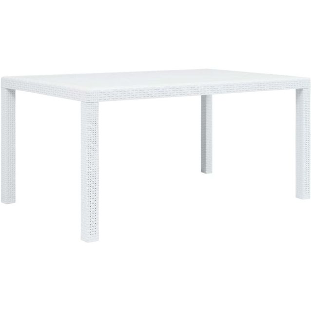 Puutarhapöytä, muovirottinki, 150x90x72 cm, valkoinen