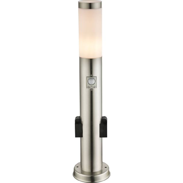Tässä tyylikäs Boston-sarjan pylvävalaisimessa on 2 pistorasiaa, ja liiketunnistin (8 metriä / 90 °) 3 eri asetuksella. Modernin ulkovalaisimen suojausluokka on IP44, joten se sopii erinomaisesti ulkokäyttöön. E27-kannan ansiosta 60 cm:n ruostumattomasta teräksestä valmistetun valaisimen valonlähde voidaan valita itse (max 60W).