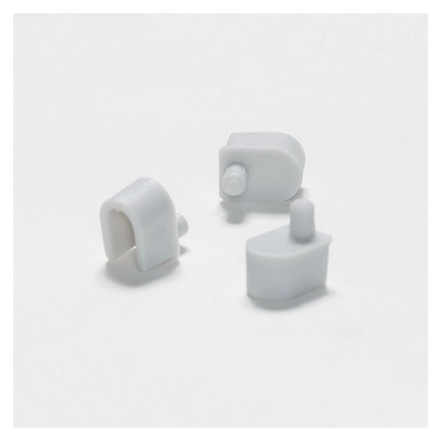 Harmaa, muovinen ritilänkannatin 5 mm. Tappikiinnitteinen kannatin.
