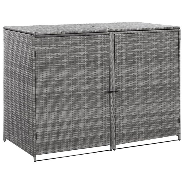 Tämä kahden roskatynnyrin säilytysvaja piilottaa roskatynnyrit näkyvistä puutarhassa. Sitä voidaan käyttää myös suurena säilytyslaatikkona puutarhassa. Vajassa on kansi ja kaksi lukittavaa ovea, joten roska-astiat voidaan helposti poistaa tyhjennystä varten. Roskavaja on valmistettu korkealaatuisesta PE-rottingista, joten se on vakaa, kestävä, vedenpitävä ja mätänemätön.